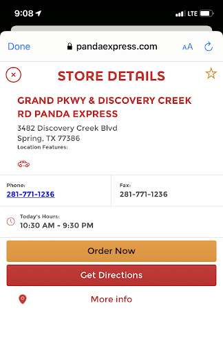Ā Ā Ā Read moreThis is the worst Panda Express we have ever been to, and itās one of the newest so there is no excuses. Since they opened the dining room since covid, they lock the doors 1 1/2 to 2 hours prior to closing the restaurant not allowing dining in (never the same time so this appears to be sheer laziness due to not wanting to clean up tables from customers). It is not posted that dine in closes earlier than the restaurant. Itās not posted on the doors, not online, nowhere. The employees are incapable of giving any reasons for why itās not posted on the doors that dine in closes early, and frankly food through this drive thru is cold, old or wrong most of the time. I want to go into the restaurant and make sure Iām getting hot fresh food with the prices being what they areā¦not old and cold food. If dine in truly closes at 8pm or 7pm as they randomly do, post it on your doors and online, so people know your policy. Panda Express has probably lost our business at all locations because of this repeat behavior. Totally ridiculous!!!! If there was zero stars or negative stars thatās what this location would get. Take your money...