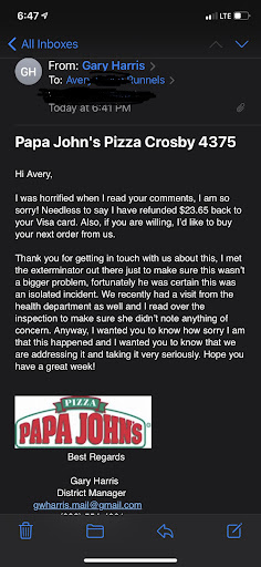 Read moreOn Saturday around 5:30pm we placed an online order #795494332. we waited patiently for 1 hour and finally received a message saying our food was at the door. we never received our food it was delivered to the wrong location. we called to speak to a manager and got hung up on 3 times before i could speak to someone. finally i was able to talk to the manager Kate. she apologized and basically told us we were out of luck as the entire store lost power and it was going to be even longer to receive our food, by this time we were really hungry we had to eat eggs and beans. My fiends and family were very upset that i could not provide them with your delicious pizza. I was promised a full refund but have not received it. kate did mention she would give me 2 pizzas for a later date however we wanted pizza at that moment and basically spent over 50 dollars on food we never received. please feel free to contact me