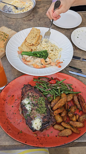 Read moreAfter passing by many times we decided to finally try out Passerela as we always see they are packed and had high expectations. We were offered champagne on the house which was a great start and I do apologize for knocking over a glass and breaking it and was even offered a new champagne glass by our server. I forgot her name, but our server was a darling and really made sure we were taken care of. We ordered the meat pizza, ribeye steak, and shrimp scampi. I review restaurants purely on the quality of the food and I must jump straight to the ribeye steak. For a steak that was $30+ I expected something quite good. I ordered the ribeye medium rare and got a blue steak. Yes, blue. Not rare, not medium rare... blue, seared outer and quite literally raw inside. Luckily, I do like a blue steak from time to time so I had no problem with the temp. However, for other guests that order a ribeye medium rare and gets blue, this is a BIG nono. The ribeye still had unrendered fat and sinew all around it. You can get a better quality and better cooked steak at Denny's and I don't mean to say it disrespectfully but more as a matter of fact. The green beans were practically boiled to a mush and the worst of all was the seasoning on the green beans. Please remind the chef to mix the salt on the green beans when seasoning it. Some beans had 0 salt on it while others tasted like they were dipped in the dead sea. The roasted potatoes were fine but just needed a bit more love, a bit more seasoning. Aside from the ribeye, the $16 meat pizza is nothing to really write about. An average pizza that got the job done for what it is. Now, the shrimp scampi was AMAZING. Absolutely delicious and the highlight of our meal. The pasta was perfectly al dente, the sauce was flavorful and creamy, and the shrimp was cooked to PERFECTION. My wife and daughter both agreed and cleaned the plate like no tomorrow. This dish is the only reason why this is a 2 star and not a 1 star rating. We also ordered a cocktail and it came out in a tall glasses looking like carrot juice. I had one sip and immediately thought it tasted like freshly cut grass which then I passed to my wife and she said it tastes like dishsoap. The service was great, the shrimp scampi was amazing, the view and atmostphere are amazing. The pizza was alright, the cocktail and especially, the ribeye, was NOT amazing. All in all, we are not given a reason to come back any time soon except maybe...