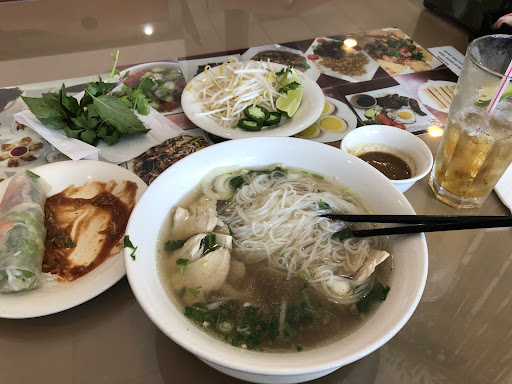 I've gone to many pho places and I understand that not everybody cooks at the same, but this place has zero flavor. Spring rolls were disgusting. Egg rolls were okay. When I first walked in I noticed a very private quiet area to the left and I wanted to sit there , but was told it was for family gatherings or big parties there were four tables in that section each table sat 4 people, not like I wanted a 6top ....either way I was sat at another 4top , it was only my son and I ... And to top it off it was past lunch hour and it was nearly empty the odds of a big party were little to none. I should have took that sign and walked out at the beginning but I didn't want to make a big deal about it and decided to stay to eat , I hate to be an exaggerator or even write nasty reviews but that was the worst $25 plus tip I've ever wasted. The service was horrible as well ... the waiter dropped off the menu didn't ask what we wanted to drink as we reviewed it , Then Took forever to take our order, I also had placed a plate to the end of the table with some trash on it hoping it would have been picked up but it wasn't. Maybe the rice plates are better but if you are going for the pho and spring rolls I suggest you don't go, but I wouldn't go back just because...