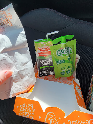 I asked at the window for a cup of ice water since I was not asked about a drink and was told they don't sell cups of water and had no ice. Luckily, I had a drink in my car, so I pulled off thinking my 1 tender and fries would be ok. But, as you can see, I got a small apple juice and applesauce. All for $5.33, mind you.