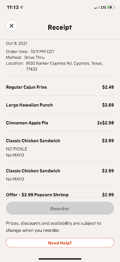 I'm just really over Popeye's inconsistency. The chicken sandwhich is what drew me back in as a customer. It was amazing the 1st year, but now I guess they decided to just be like every other fast food joint & cook bulk batches of meat then just let it sit in the heating tray until it sells. I worked at Popeyes & McDonaldswhen I was a teenager & I remember the rules were that after so many minutes in the heat tray it is supposed to be thrown away.. Well No Fast Food managers actually allow employees to follow these rules (because it makes the paperwork for cost/waste look bad), unless a District manager is visiting or it's an Inspection day.. So if your lucky enough to visit Popeyes when they just cooked a fresh batch it will be great. Otherwise expect a hard dried out piece of rubber hidden under an inch thick layer of greasy breading, which is falling off the shrunken filet. This has happen to me twice already. Another time they shorted me an entire sandwich. Only once did I ever get thru to a manager to remake us new sandwiches, other times I had to reach out to Corporate. Popeyes is making me feel like a "Karen". I really don't like confrontation nor complaining but the quality is inedible & I'm not going to throw my money in the trash over & over.. So I simply will Stop going.. 2 stars only for the red beans & rice that I will continue to pickup from time to time. But as far as chicken, it's better at the local...
