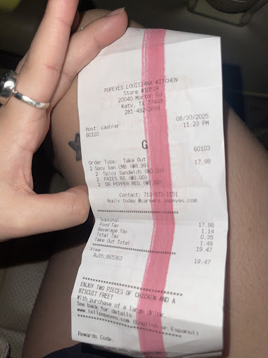 Read moreThis location, at Morton and Fry Road, in Katy, TX is the worst location in the area. Last night I ordered a 5-piece chicken finger meal and a small french fry. My total was not provided at the speaker. When I arrived at the window the guy standing there just stuck out his hand waiting for my payment, he never said a word. The payment was processed and I was handed a bag with what I presumed was my food. I then asked for a few packets of BBQ sauce and honey mustard. The same silent guy rolled his eyes and handed me one of each. At this point I was tired of dealing with Mr. Mime and went on my way. When I arrived home I discovered that I had received someone else’s order and was charged more than twice what my order should have costs. This is the most rude, unprofessional Popeyes and I would rather drive out of my way to Church’s than...