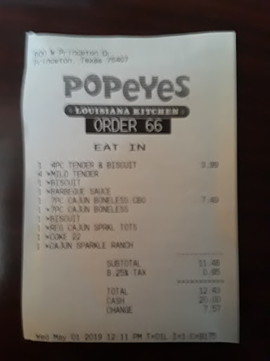 At the popeyes in Princeton,Texas I waited at the drive thru speaker waiting on someone to aknowledge my presence and it took them almost 10 minutes for someone to get on the intercom and when they did the first thing out the young ladies mouth was , I'll be with you in a moment sir. Unbelievable! Now at this point I was fit to be tied , but after another 7 minute wait she came across the intercom , not to apologize for the extremely long wait that I had but I got what do you need and you can rest assured , I let her know what I needed. Anyways I digress , so I give her my order for a 3 piece chicken meal with a large red beans and rice with a Dr. Pepper for the drink. She then proceeded to ask me if I preferred all white meat or mixed , I told her all white , now here is what drove me outta there with the quickness , this girl , somebody's little girl tells me , "We ain't got no white meat chicken" her words , verbatim. As you can tell , I would not take my dog there to eat , quite possibly the worst service that I've ever had. Popeyes in P Town , you best get a grip on things if you expect to...