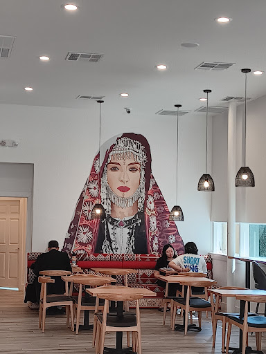 Ā Ā Ā Read moreThis was our first time visiting...Here's what i liked and here's where i think they need improvement. First, i loved the Turkish coffee...it was excellent! Tasted wonderful! The Rose & Pistachio milk cake was also very delicious! :) The strong points of decor are the beautiful red patterned built in seating (to the left, as you enter the cafe), and the couches and chairs around the back area are very cozy. The mural portrait on the back wall is beautiful and the mediterranean music really sets the tone. Now, here's where i think they could improve. A large majority of the seating area is kind of bland.... feels empty and bare. When i requested my hot tea in an actual mug instead of a paper cup (as I saw they had many mugs available), the girl that took my order told me, "No." I think it could have been easy to just give me my hot tea in a real mug, rather than a paper cup. It's the little things that need a bit more attention. This place has so much potential. Not a bad experience, just okay. So, to recap.....great milk cake and turkish coffee, peaceful atmosphere, but just needs a little improvement in...