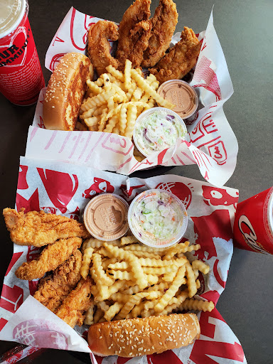 I love eating at Raising Cane's. This is my favorite chicken finger joint. The food is always hot and fresh and delicious. The sauce is wonderful and a nice change of pace from ketchup or other dipping sauces. The fries are consistently hot, crispy but not crunchy, and salted perfectly. The tenders are juicy and hot, and consistently on the same quality level. The toast is never brunt or too under done. I know I will get a good meal and it will be easy to order with no hastle and takes no time at all. This is hands down the best in terms of speed of service and food standard quality and consistency. What they do by forgoing the variety aspect is, instead, offering the go-to place for hot and fresh chicken. The ambiance is modern and pretty neat with a chill and alma mater or collegiate football feel with tables and clean seating. The sweet tea is perfectly sweetened and all in all a model for businesses that want to offer a lean product delivery in the...