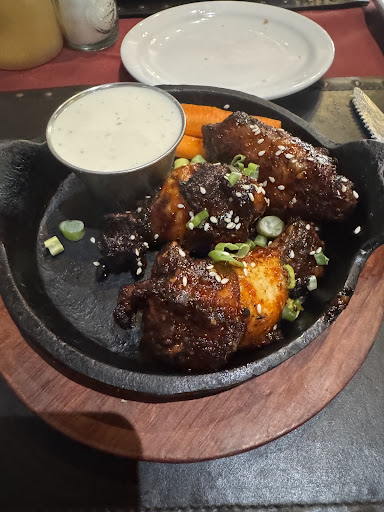 -Korean Grill Wings - Grilled and Stirred in Spicy Korean BBQ Sauce -Red Flame Jalapeños - mozzarella, cheddar, and tuna in baconwrapped, fresh jalapenos -Korean Tenderloin Skewer - One tenderloin Strip With a Savory Korean Demi Glaze. -Oyster Nachos - Fried oysters on tortilla chips with melted cheese, pico de gallo and queso fresco -Stuffed Squash Blossoms - stuffed with ricotta, lemon, garlic (I am guessing)
