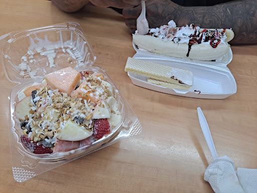Read moreThe fruit salad was alright...better if i would have asked for mangos inside.. My boyfriend didn't like his banana split....here they let you pick your 3 choices of ice cream flavors to your banana split. Lol cool in a way. The sprinkles on the banana split I would NEVER put on mine. But they didn't ask him, they just added.just for the 2 things we bought was damn near 20 buck's. Boy oh boy...did my boyfriend complain...