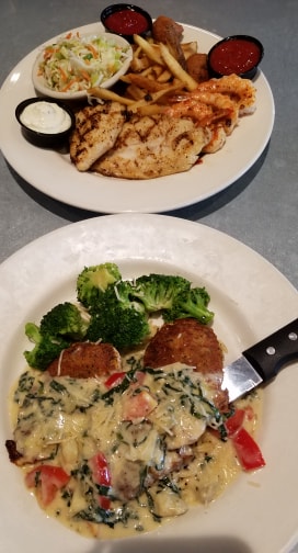 We enjoyed lunch at Rockfish Seafood & Grill on 8/30/2019 and ordered Herb Crusted Chicken for myself and Grilled Catfish and Shrimp with Fries and Slaw for my husband. I discovered while reviewing the menu that you can substitute any fish dish with chicken which is awesome because I have a hard time eating fish which makes this a nice lunch or dinner date with the Honey type place, so we are both happy. I also had a Mimosa which was a nice way to start my weekend! Food: The food was delicious. We both thought our meals were light and so fresh it tasted like they may have just put the coleslaw together right out of a garden! The Herb Crusted Chicken came on a bed of herbed orzo pasta in a creamy lemon butter sauce with small chunks of tomatoes and fresh spinach, making my mouth water just thinking about it, was also served with fresh crisp but just done enough broccoli. Yes, yum, may need to go for lunch again now. Accessibility and ambiance: We sat near the bar in a booth but there are also tables if you prefer. The bar had two TVs both playing sports when we arrived. There is also a patio if you prefer to sit outdoors and enjoy the breeze. The bathrooms were very clean and smelled like they had recently been clean. There is also a family restroom for your convenience. There was no need for wheelchair ramps as there are no steps. The dining area and bar were clean and had the furnishings as if you were at the ocean and enjoy your catch near the pier. Cost: We spent $44 for Lunch for 2 with a Mimosa and a Beer along with 2 waters however we ordered from the Dinner menu rather than the lunch menu. They do offer a lunch menu Monday – Friday from 11am – 4pm with $10 and under choices. Tips: You can substitute fish with chicken on any dish. Brunch is served On Saturday and Sunday 10am – 3pm. This would be an enjoyable place to meet up with friends. See the patio picture! Service: Very friendly from the moment we walked in. We were immediately greeted. Our server seemed genuinely pleased to show us our table and help offer suggestions and remained cheerful throughout the entire visit. We would definitely recommend giving Rockfish Seafood and Grill a try, you might just find your new...