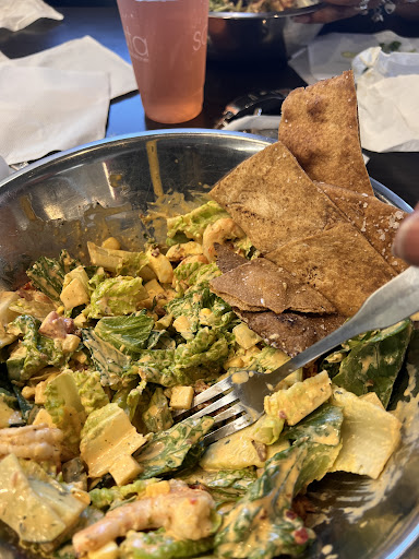 What a great healthy alternative for a meal! All of the items are fresh and a great way to get a solid meal without consuming too many calories. Salata exceeded my expectations! I was searching for a buffet style, healthy restaurant and decided to try Salata. When looking online for reviews for Salata, it perplexed me that Yelp had a lower review score as opposed to the high reviews on Google... It's only fair to review it myself and I was certainly not disappointed! Salata is not a buffet ,but rather, a cafeteria style assembly line to which you build your own salad. The customer starts by selecting one of the following meal sizes: a burrito style, a small bowl or a regular ( both bowls are actually very generous portions!) The following process are a simple four-step procedure (after you select the portion/size bowl): (1) Select your base (which lettuces you want). (2) Select your toppings (comprised of many, many options of fresh vegetables, fruits and cheeses.) (3) Select your dressing (there must be over a dozen to choose from. All are very delicious!) (4) Select your protein (meats and/or seafoods.) *At the end, you can top it off with nuts, tortillas strips, croutons or even a multigrain croissant. Once the staff have added all of the ingredients that you have selected, they toss it together with a pair of tongs so everything is well coated and well mixed together. The staff is very friendly and ensures that your eating areas and restrooms are clean and sanitized. The soda fountain, teas and lemonades area is also kept very clean as well! The overall ambiance of the restaurant has a nice fresh, fun feel to it (almost like you're at a juice bar but you're there for salads instead.) I definitely give Salata two very well deserved big thumbs up! It's a fantastic alternative to routine hot diner meals and it's not a burden on the wallet, as it's approximately only $13 per person for a generous salad and drink. I will be eating...