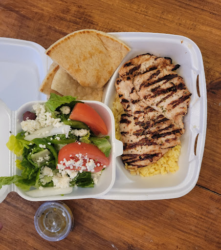 My combo came out in a fairly timely manner. The rice I ordered as a side tasted of nothing but salt. The souvlaki (I ordered the pork) was seasoned well and ranged from slightly dry to juicy. I wouldn't be surprised to learn, however, that the seasoning is the same for everything on the menu. The gyro meat, despite being displayed on a rotisserie, was just barely warm, as was the pita bread. The meat itself was strikingly similar to what you'd find at the mall.