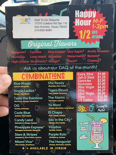 Read moreReally good frozen daiquiris to suit all levels of tolerance, from virgin to voodoo! The price is pretty fair as well with various specials going on almost every day of the week. On Mondays, military get 20% off. The daiquiris are THICK - a 32oz lasted me 2 days (it held up fine in my freezer over night).