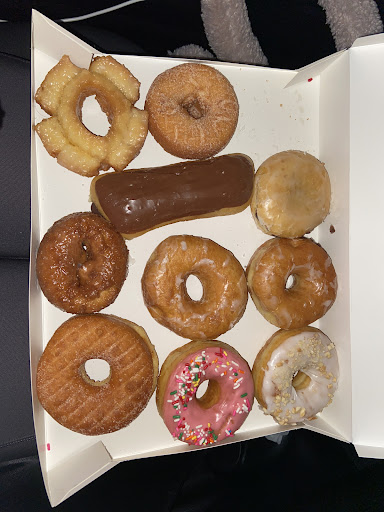 Less donut variety than a big chain, but better quality. They do have unusual methods with their filled donuts, which are partially sliced which means more filling edge to edge but more awkward to eat like a jelly sandwich is likely to ooze out the edges. Sooo yummy though! Larger orders get a random bonus of...