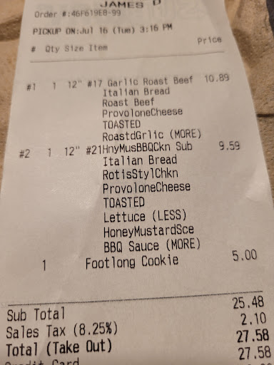 Read moreI've gotta give some love and credit to Subway today. I admittedly haven't been in years due to increased prices and subpar sandwiches/ options. My MIL suggested we try them today bc they're doing buy one get one free footlongs (FLBOGO code good through 9/27-10/13) I got footlong"the Beast" ($11.59) and my MIL got the go Footlong Philly Cheesesteak ($9.69) for a total of $12.55 with the coupon (the Beast is a bit more expensive bc it has 1/2 lb meat) I was very pleased to see they have expanded their menu options as well