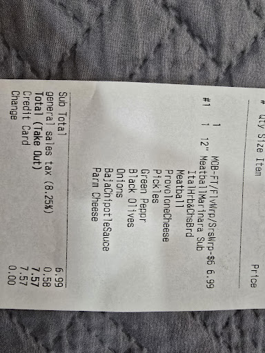 Read moreWatch & look at your order prior to paying. I was there & took my sandwich home.......my sandwich only had 1 slice of turkey & 1 slice of cheese; the added veggie I requested were VERY MINIMAL!!! They "prep" the sandwiches behind a cover so that you cannot "see" when they put the meat in & very suspicious. I would NEVER shop at this Subway......every single of the photos shown ONLINE that the bun is full of meat....trust me, they are CHEATING & FALSE...