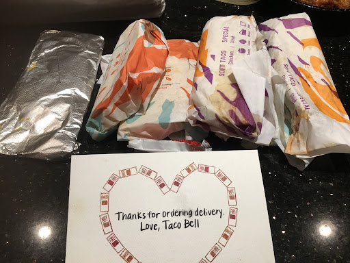 Read moreI saw the TV commercials about free delivery for a limited time and decided to give it a try. I was pleasantly surprised. When I placed the order it said delivery time was approximately 45-60 minutes. I received an email confirming the order and a link to track the delivery. The tracking showed the order was being prepared and in approximately 20 minutes the driver was ringing my doorbell. I was pleasantly surprised. The driver was a young male. He was in a great mood, had a big smile and greeted me as I opened the door. He handed me the bags and told me to have a nice evening. He actually skipped down the sidewalk to his car. I ordered much more food than I could eat, thinking my son would stop by latter. All items were hot and fresh. The order was accurate including the number of sauce packets. I was very pleased with the order and the quality of the food. I will definitely order from Taco Bell on...