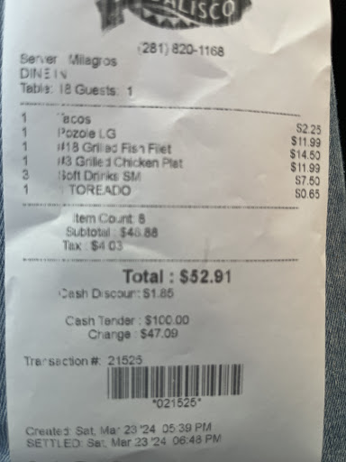 Read moreCame in on Friday night. It was crowded. But I was seated quickly. I got a large horchata to drink. It was pretty good. They gave me red and green salsa. Red salsa tasted like watered-down chef-boy-ar-dee sauce. The green salsa was delicious and had the perfect amount of spice. They gave me alot of broken chips. I ordered the #9 surf & turf fajitas. It came out quickly. The portion was smaller compared to other restaurants. Only got 3 shrimp, which didn't taste good, more fishy than normal. Looked boiled with seasoning thrown on. Received only 5 pieces of skirt steak and 4 pieces of chicken. Neither tasted seasoned or marinated. Couldn't finish it. I had to ask another waiter for my flour tortillas. They only gave me 2. The rice was a little bland, but the refried beans were great. The shredded chicken enchilada was delicious though. The bathroom was kind of dirty but surprisingly didn't smell. My waitress didn't seem to want to serve me, but I think she was just overwhelmed and ready to go home. Don't really think this place is worth it. 14.99$ wasted on mediocre food I could have...