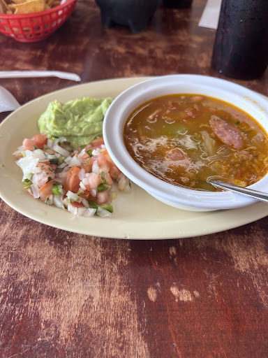 On Thursday, you get a monster plate of delicious sizzling meat for $6. It comes with a giant bowl of charro bean soup, delicious spanish rice, guacamole, tortillas (plenty of them too) and pico de gallo. They have lots of alcohol selections (no bar) if you're inclined. I love the very large, "large" soda glasses.