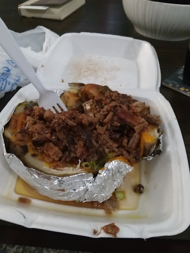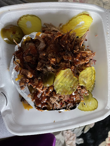 Read moreBased on my experience/opinion... Read all the raving reviews on Google and decided to give this place a try. Location is on a strip mall (next yo a gas station, Jacqui Cleaners and a medical plaza) on Spring Steubner, past Rhodes, etc heading east toward I-45. Place was empty but clean and well-kept. Ordered loaded baked potato with brisket, and two, two-meat plates (brisket and ribs; brisket and sausage). Three sides came with each of the latter - ordered baked beans, candied yam and jalapeño corn bread, and an order of French fries as an extra ($2.95 for a mod-sized tub). Service was quick, but matter-of-fact, no warm greeting or other small talk. Food was delivered quickly. Prices were reasonable. $45 incl taxes and tips. Portion size was ample...brisket and sausage were decent/tasty but not spectacular. Ribs were chewy, fries were soggy and the cornbread was inedible - very dry and tasteless, had to throw away. Quite disappointed with these. Candied yams and baked beans were about average. Not impressed overall, food tasted pre-made and left out for while e.g, cornbread, ribs. SouthernQ on Kuykendahl is still the best in the area, IMO.