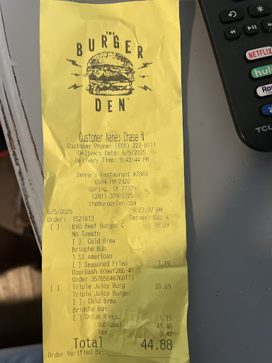 I ordered a bacon burger combo with onion rings through Uber. The driver came straight to my house, no stops & was here in minutes. The cons: The onion rings were ice cold and the burger wasn't far behind. The options I chose under "choose 2 sauces" were ketchup & ranch. No ranch to be seen. My reason for 4 stars: I would think in the restaurant industry a food warner would be a necessity especially for take out. Cold food doesn't warrant a great rating in my book unless it's meant to be cold. This was my first experience with The Burger Den. I always give a 2nd chance & hopefully they won't disappoint next time. The pros: I will add, the burger was made to order perfectly, the packaging is right on & the sweet cream cold brew was firehouse worthy. I look forward to...