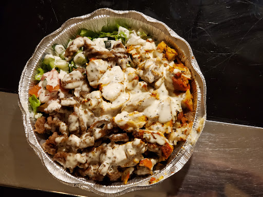 Mixed plates are a go-to; with lamb, chicken, rice, a salad, and different sauces, it's a pretty well-rounded meal. And quite delicious, too. I find the small plates a little too small and the larger portion difficult to finish.