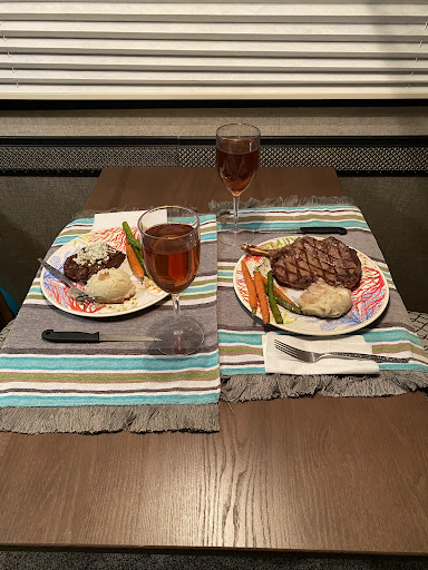 I made a reservation for Friday at 6:30 because I knew it would probably be busy. My husband and I were finally getting around to celebrating our anniversary and when I made the reservation, I told them we were celebrating. We show up about 10 minutes early. My husband dropped me off at the door because of the rain and went to park the car. No one addressed me waiting until he walked in. No big deal. We were seated and handed menus and our waiter said he would be right back. In the mean time, we realized our table was horribly wobbly - like uncomfortably so. When our waiter finally came back after 5 minutes, his suggestion was to use our butter knife to steady the table. Seriously? That was the only help/suggestion he offered. By that time, he put our water out and the table was so wobbly that our glasses of water almost spilled when my husband got up. He said forget it and just used the butter knife to steady the table. A new knife was never given to him. We placed an appetizer order and requested the recommended wine pairing. The antipasto platter with the Rose was delicious and perfectly paired. We never got any bread while tables around us received two baskets (I’m a carb fiend so this was important to me! Lol) We placed salad orders and dinner requests, again with the recommended wine pairing. Salads were delicious and we had plenty of time to eat our courses before the next one came. By the time our dinner arrived, we had to ask another member of the waitstaff to check on our wine selections as our meals were almost done and they had not arrived. Our waiter brought them out. I had the lamb which was perfectly cooked and delicious, my husband had the duck and left nothing on his plate. After dinner, we ordered dessert. I wanted the bananas foster and my husband ordered the cherries jubilee. Our waiter came back about 5 minutes later to tell us these desserts were ordered for two, so we could pick one or have both but it would be a lot. We ordered the bananas foster. The dessert was the only thing that didn’t impress me. It was simply some warmed through bananas in an ice cream bowl with a scoop of vanilla and caramel sauce. It was more of a soup by the time we got it, which makes me think it sat for a second before being served. Overall the food was great but our service left something to be desired. For the prices they are charging, I would want the staff to be knowledgeable about the wine pairings and also be attentive. I felt sort of ignored and also a bit bothered regarding the table issue and the waiters solution. I’m not sure I will return mainly because of our service. I love their wine so I’ll probably just stick to supporting them that way and stay out of...
