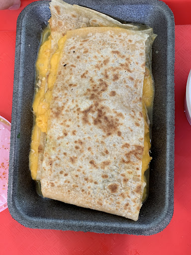Went for late lunch around 1pm. Only 3 employees in the place, one was on break. Ordered a burrito and taco and flan, my friend ordered a chicken quesadilla and elote. Everything came out fast and hot. Yay! Unfortunately all the food was reheated either in a microwave or on the flat top grill. Quesadilla was drowned in a pool of chicken water from the meat as it was reheated. The meat on my burrito was dry and super chewy (maybe cooked yesterday?) The shrimp had no grill marks (or flavor) and was rubbery too. They fried the shrimp on my taco instead of grilled like I ordered.