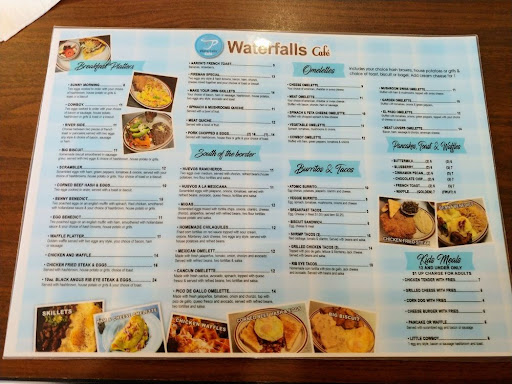 Read moreRecommended: YES! A really great diner for breakfast in Magnolia! The food was delicious, the prices were great and the staff was wonderful! Very nice, clean and quiet noise level place to enjoy a breakfast. We came here based on the other positive reviews for breakfast in the area. I was not disappointed. Although it was a bit busy, we were greeted and seated rather quickly. The menu offer quite a variety of meals, but, we were focused on the breakfast. We chose the Cowboy and the Riverside breakfasts. The Cowboy breakfast has choices of eggs, meat, potatoes and a bread. I opted for The scrambled eggs, thick cut bacon, house potatoes and a biscuit. My guest selected the Riverside which consisted of eggs over easy, thick cut bacon and pancakes. The eggs were fresh and prepared well, the bacon had a wonderful texture and smoky sweetness to it. The pancakes were fluffy and tasted like they were from scratch as well as the biscuit, which almost had very good density. All of the foods and coffee were of generous portions and delicious! The cost of the meals with coffee and tax came out to about $15 per person. The staff was wonderful and attentive without being intrusive. The waitress' attitude was great and friendly. The overall cleanliness in the restaurant was enjoyable and the bathrooms are kept clean. The Waterfalls Café earns two big thumbs up and I plan to make this one of my regular go-to breakfast diners! Everything from the food, to the prices, to the staff made it for a very...