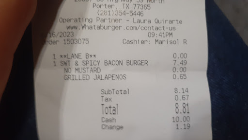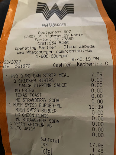 Ā Ā Ā Read moreThis has to be one of the worst dining experiences of my life. I ordered online to pickup through the drive-thru. I arrived at 11:55 and the line was pretty long. Usually it moves quickly, so I didn't think anything of it. What I didn't realize is that there was only one manager and one worker working. By the time I realized, it was too late. I was trapped in line for 55 minutes of hell. I spent 15 minutes at the speaker alone before they even asked me if I wanted to order. I misheard the cashier and pulled out to the second lane and waited for my order. I was then told that I had to come inside and pickup my order. So I was pretty furious. I understand that they were short handed and very busy, but it was just a ridiculous experience. I honestly feel bad for snapping at the cashier for wasting my time when I picked up my order inside. I know that it's not her fault. I just finished working an 11 hour shift and I'm exhausted, so the last thing I wanted to do was wait an hour for my food. Somehow my food was cold by the time I received it. So I'm guessing that it was made sometime while I was trapped in the drive thru line. Needless to say, I'll never be eating at this location again. The district manager needs to step things up at this location and make sure that they are fully staffed. The manager offered me a job while I was complaining about waiting so long for my food. Lol The cashier woman seriously needs a raise. No one should have to work in such a terrible situation. The poor woman is a saint for not walking out and quitting. I would highly advise any Whataburger lovers to skip this location and visit the one in Valley Ranch or on Kingwood...