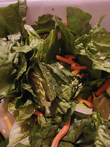 Salad Only had dark, tough, outer leaves. Missing peppers, and tomatoes Scant flakes of cheese