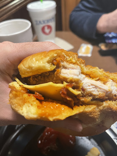Long Review- I ordered their chicken sandwich meal with a Dr. Pepper and an order of their white cheddar cheese bites. Came out to just under 14.00 total. The chicken sandwich by itself sells for 7.00 without the meal. So first let me say the positives. The potato bread bum was delicious. Zaxby pickle selection is good too thick crispy kosher slices. Unfortunately the bun was the highlight. I got a chicken sandwich the same size as a Chic FIL A sandwich but 2.00 more. It was given an extremely generous portion of a reddish zaxby sauce that tasted like ketchup and mayo mixed together and any taste removed from it. It wasn't sweet, tangy, spicy, nothing. It just made the sandwich soggy and covered up the chicken and pickles flavor badly. The sauce is not appetizing at all. The accompanying fried were thick cut crinkle fries that weren't crispy but a sad soggy kind of cooked. Under salted and limp they didn't make a great impression and I didn't finish them due to it. Lastly the cheddar bites. Overall they were ok. Not amazing or special but ok. The batter on them is thick and more like breading then anything. It was supposed to come with ranch I think but my order didn't get it. Eating them by themselves was not bad. Also not really memorable.