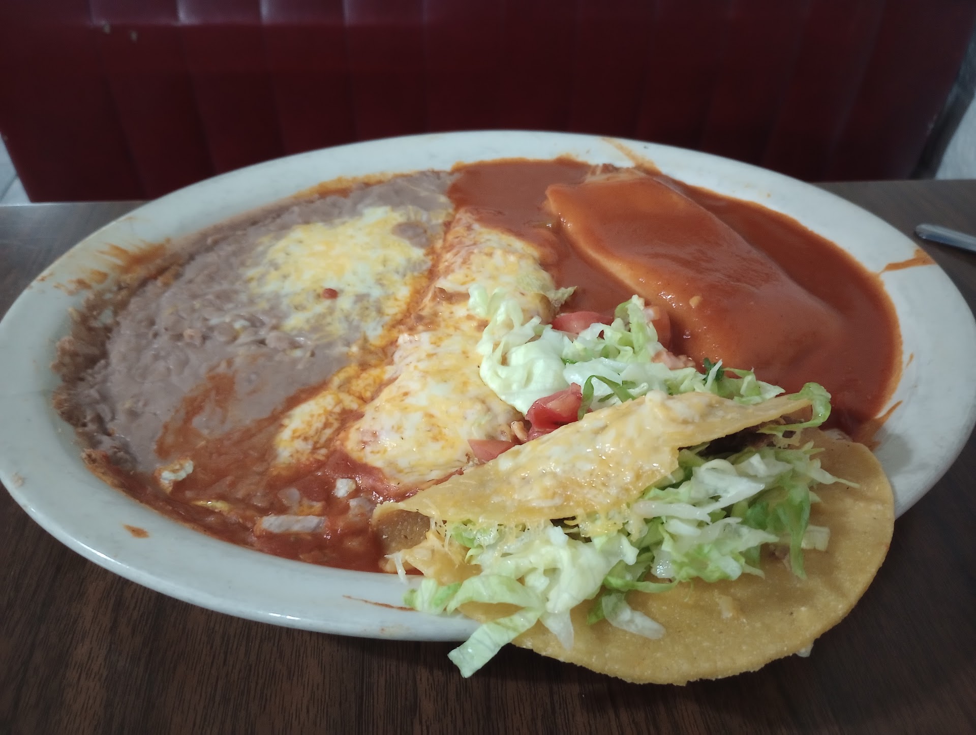 Read moreThey have a popular rating based off locals however when you can cook, make and delight in mexican food cuisine this place will totally disappoint you. It disappointed me. Not worth $34 bucks for 2 waters a chimi and green burro enchilada style. Plus shall need to mention the green chili burro enchilada style but served a bean burro, waitress had to have kitchen remake it by then I missed having a hot meal with my hubby because his food sat on the table while he wanted us to eat together waiting on them to correct the order which took over 15 mins. My hubby and I go out to eat together to eat our meal together. That is the whole reason we go out to eat together which is hardly ever to enjoy it together. The taste of the green chili burrito was plain, meat was dry plainly seasoned in a watered down green chili broth, more tortilla than filling. It wasn't what i would consider a ok or even good burro. It was disappointing to say the lease. The Chips and salsa were blah, chips were cold and if you want what we found out after the fact, if you want chunky salsa they charged us $6.50 for a small bowl. I did questioned the waitress but she had the idgas attitude so what can you do but write a review :). The table sauce they compliment you with if you dine in is blah. My hubby and I are newly to the area but not Arizona it our hometown but we guarantee we wont be back here. There are plenty of other mexican food restaurants in the area left to explore......