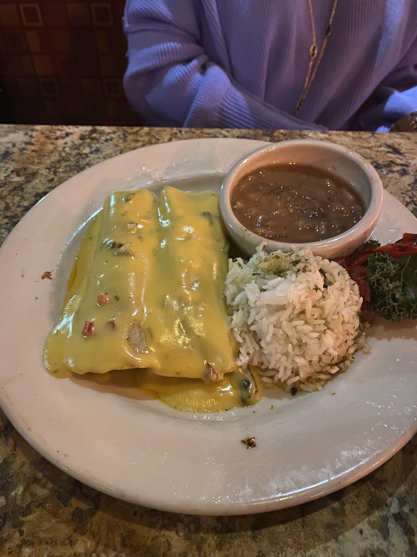 Read moreWe had high hopes of eating here, especially since a student in my class gave me a gift card for Abuelos. When we walked in we were pleasantly surprised by the pretty decor and atmosphere. After we were seated they brought tortilla chips and different salsas to our table while we waited for our food. I ordered chicken enchiladas and my husband got the steak fajitas. I mostly enjoyed my chicken enciladas but they were not the tastiest that I've had. The sides were just so so, nothing special.The steak fajitas had a good flavor but not as tasty as we have had elsewhere. The big disappointment was the wait staff. Our server Cameron took our order with minimal chatting which was fine however, she never came back throughout our whole meal to see how we were doing and I desperately needed a refill on my drink. She kept walking by us without making eye contact. Finally I was able to get a knd bus boy's attention and asked him if I could have a refill, so he said he would see if he could help. About 7 minutes later, our server stopped by, quickly put a refill on the table without one word and took off. She seemed bugged that she had to do that! Finally, right when we were finished, she suddenly was sweet and kept asking if she could get me another refill and turned into a kinder person. I don't know if she was having a hard day or not, but the whole experience was not a positive one and I'm pretty sure we will not be going back. And I love...