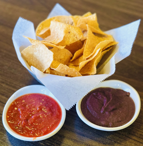 Chips and hot sauce were brought to the table with a serving of beans. The chips were not typical corn. They were also well prepared and NOT GREASY as is the case in some other restaurants.. Hot sauce was nice consistency and had a little bite to it.