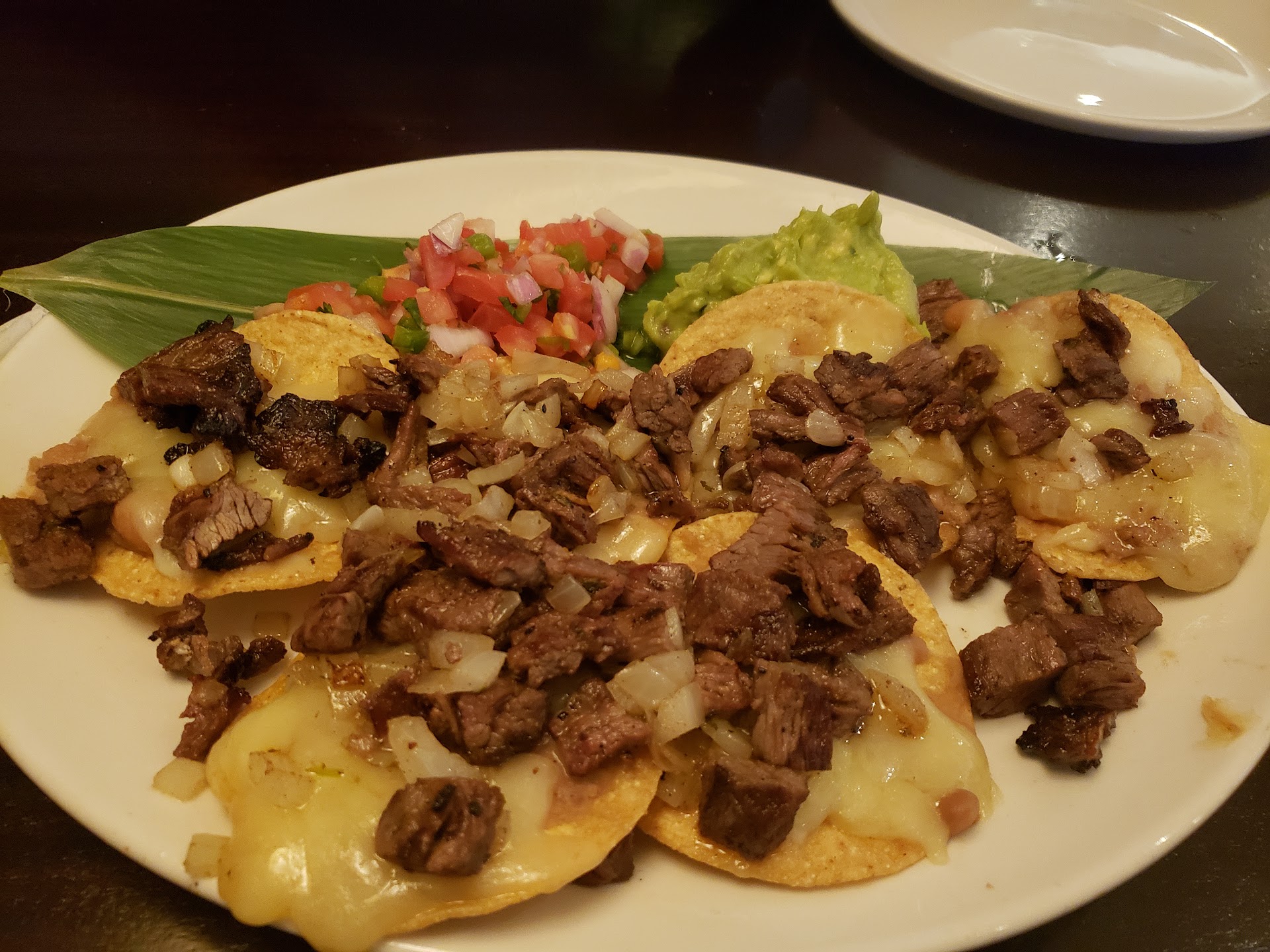 Beef Fajitas (50/50 tortillas) Chicken Fajitas (50/50 tortillas) or half and half!! Beef Fajita or Chicken Nachos White Queso with Ground Beef (THE BEST) Brisket Quesadillas Chicken Flautas