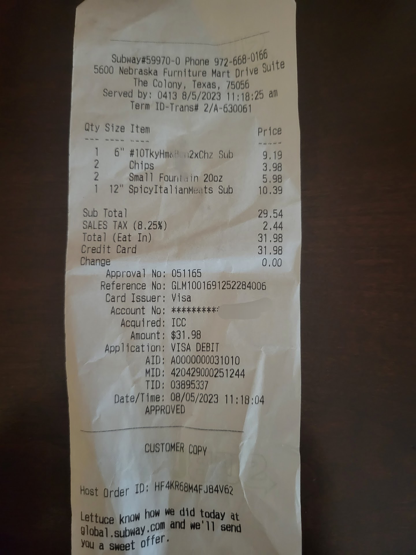Read moreStopped off at the subway inside Nebraska Furniture Mart in Frisco. Not a very good experience. The food was as expected for a fast food restaurant. The restaurant area was not very clean with discarded food items on the floor in the dining area. The staff behind the counter made you feel like you were interrupting their day. There was one couple ahead of us and still took 15-20 minutes to place our order and pay for it. There was 4 staff members behind the counter 2 were involved in conversations while one was taking orders and preparing the food and one taking payments and running back and forth to the prep area in the back. Once our payment was taken the person taking our payment just walked away. They did not place our food in a bag or on a tray. With our food still sitting well beyond our reach. I had to Lean well into the prep area and was able to just reach our food order. Again, it seemed like the customers were interrupting their day. The lack of customer service and lack of cleanliness of this restaurant...