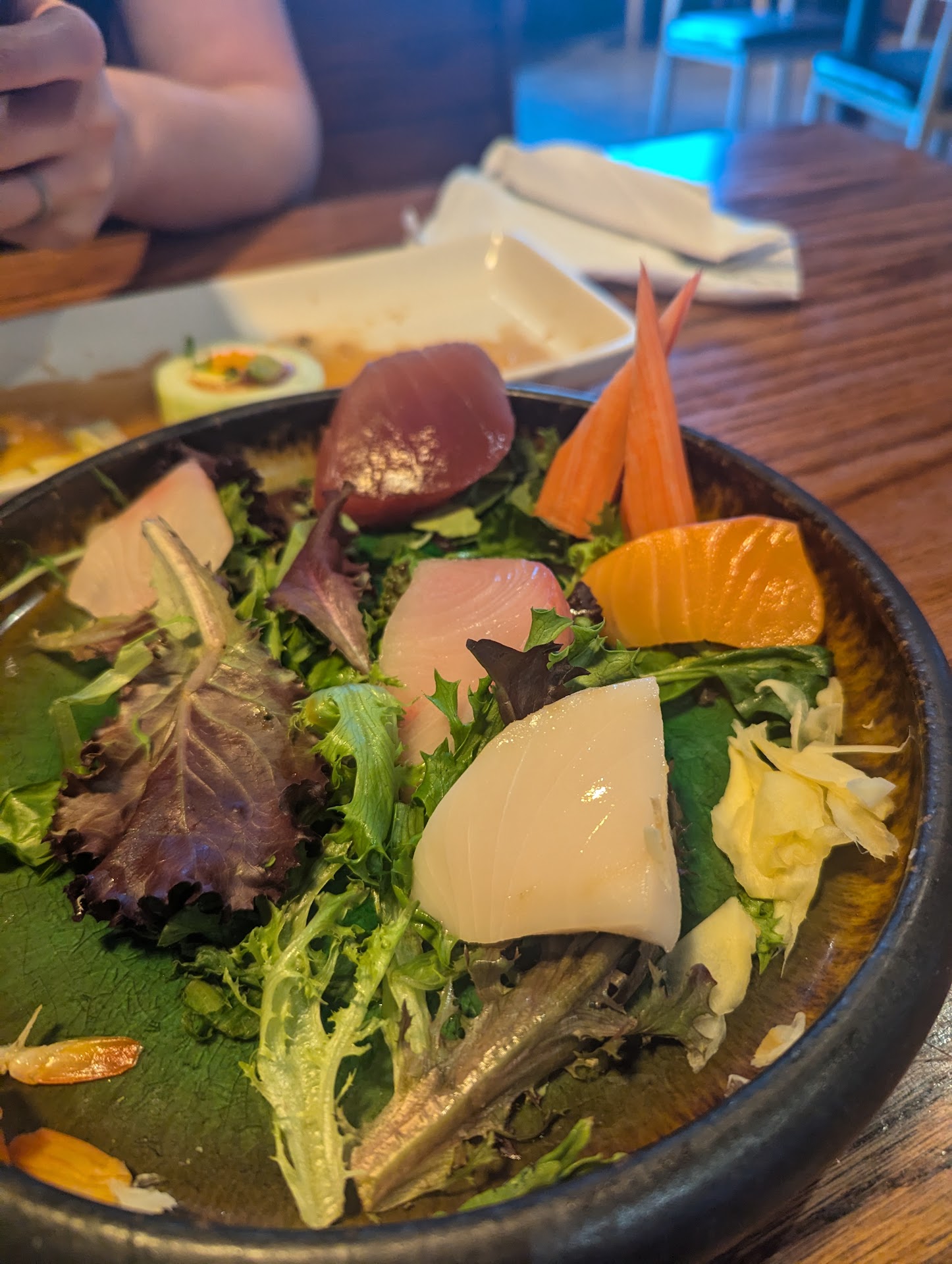 I personally can judge a sushi place by how their yellowtail tastes. Here it was soft, buttery(melts in your mouth) and thicker slices cut for the sashimi. It was fresh and not fishy which says a lot of quality of the fish but also how well they store it and keep it.