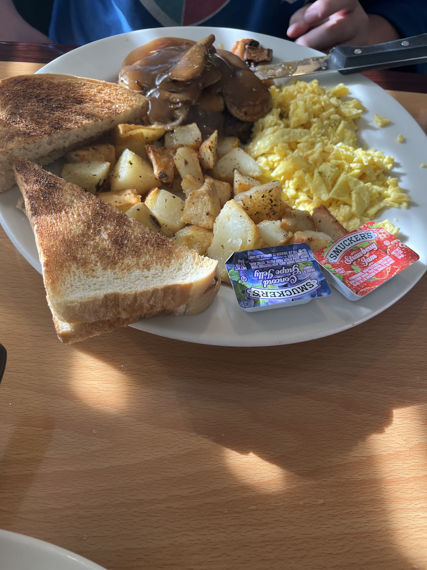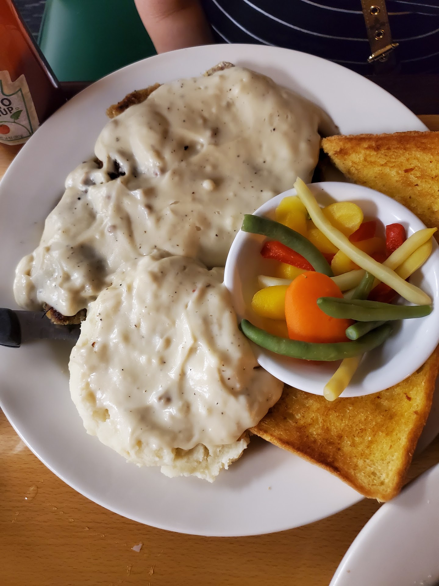 Chicken strips and omelette were good; slightly above average. Fries are thin and crispy. Salad was fresh. The “BBQ” dishes are not smoked (they are oven roasted) and therefore, in my opinion, not BBQ at all. The staff was friendly, but the place is a bit of a dive. It’s dated, which is okay, but it’s not clean. Example: cushion is seats is all but gone (dated) and your feet stick to the bathroom floors (that has stained walls). I didn’t want to even think about the state of the kitchen. My Mom always said that you might not be able to afford nice stuff, but you can always afford to keep your stuff nice. Prices were reasonable. In the end, I might come back, but I certainly would not go out of my way to work it in to...
