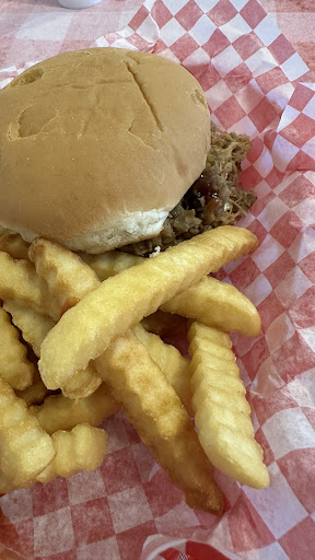 Wanted bbq but our usual places were closed on Monday. So glad they were!! You can order outside or sit inside. I love a good pulled pork and this may be the best Iâve ever had! The bbq is made by them and fresh! The fries were hot and crispy on outside. Soft and yummy inside. So much on the menu I want try. Pepper steak sandwich, brisket, pizza burger. Even crawfish pie! And fried green tomatoes! Staff is super friendly. Itâs like...