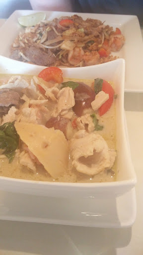 We ordered Thai tea, which was a little too sweet for my liking, but it was still very good. The Thai Spring Rolls were delicious and crisp, and despite them being fried, were not greasy. They were fresh and very tasty. My boyfriend got Pad Zee Ew, which was good, but looked and tasted a little more like Pad Thai, but the flavors were still good and unique. I ordered the green curry, and it was spectacular. Not overly sweet like a lot of curries in the area. We both ordered level three spice, and it wasn't too spicy in my opinion, but they were glad to bring us Thai chilies.