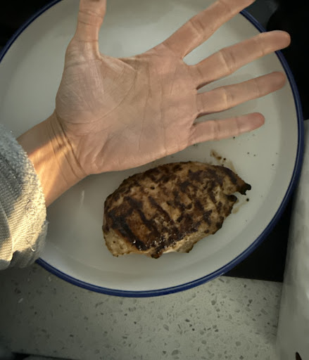 Photos are from a carry out order a few weeks ago and then dine in. The carry out breasts weighed were less than 3oz each. I feel like theyāre splitting the breast and selling it as two separates, because the average chicken breast is 6-8oz cooked.
