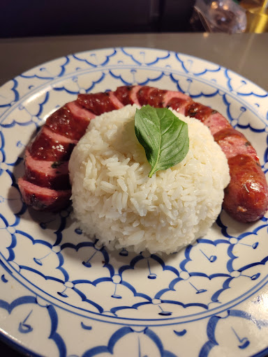 Food was pretty good. Couldn't help but shake the feeling I was still sitting in Tapped. After frequenting Charm Thai Kitchen pretty regularly and being impressed with the food and the decor I was really looking forward to this place. The barbecue is good even with the flavor twist to pair with Thai food but it's not the best out there when it comes to food fusion. Another disappointing aspect is with such a home run hit with Charm Thai, You wouldnt believe it was the same owners. Food is good enough to stop in every once in awhile if in the area but not really good enough to make it a point to drive across town for it or go for a date night. I mentioned above that I literally still feel like I'm sitting in tapped. Looks like they just did the bare minimum on decorating the place which is a complete 180, and on top of that it doesn't look that well done. I walked in expecting to be WOWED, but not the case.