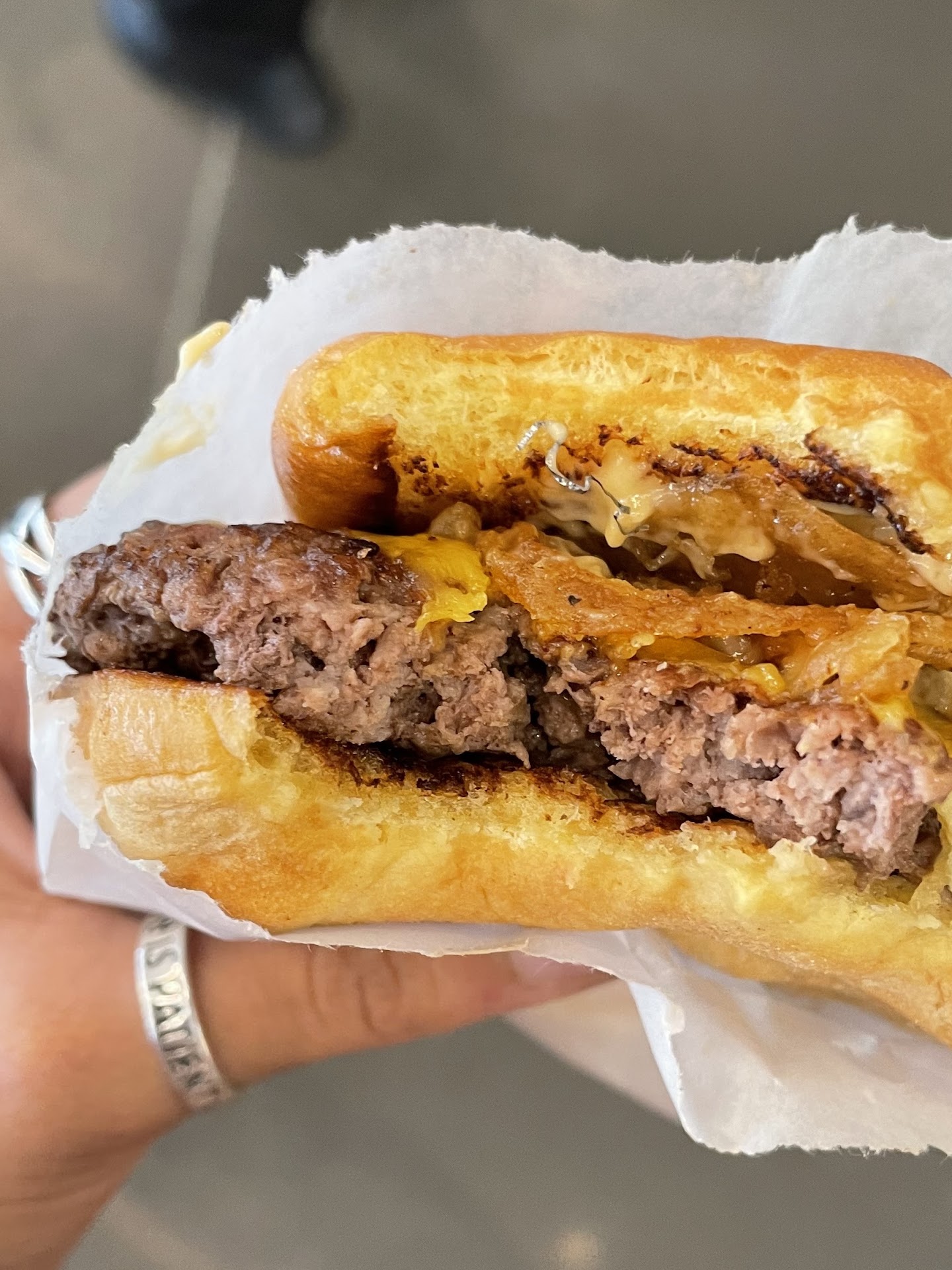 Now for the bad. We opted for the self-ordering pc, not realizing that we could've ordered at the counter (not that it's a bad thing, but I have a point!) the program was easy until it came time for allergy listing. There was no custom allergy option. Since I suffer from an uncommon food allergy, this was a bit frustrating but bit a big deal (at the time). Once our order was placed, I did walk up to the front counter to let them know about the allergy. This is where it went downhill. I informed the cashier that I had a severe allergy, and since I just placed my order, I'd like for the kitchen to be informed (literally said this super polite). The cashier said there was an allergy option on the order kisok. I let her know that mine wasn't listed. I informed her that I have a DEADLY allergy to raw tomatoes. She asked me what I was ordering and then stated mine didn't come with them. I told her I understand, but I'm more concerned with cross contamination and the kitchen staff needs to change their gloves and equipment, just to be safe. I was met with, "annoyed eye roll Yours doesn't come with them, so you'll be okay". I'm sorry, but I worked in the restaurant industry for many years, and I take allergies very serious. I have literally almost died because I accidently ate something that was cross contaminated. The eye roll and attitude was not warranted as I made sure I stayed polite and professional. I do NOT want to be a karen. I despise them, but I'm also concerned about the competency this cashier has, and wondering if it's a training problem, lack of understanding/comprehension, or just an idgaf attitude (which honestly, I didn't get from her. I do give the benefit of the doubt and say it just took a minute for this to "click" since it's a rare allergy. Now, onto the food. For the price of a single patty, I was honestly expecting more than just a McDonald's size patty. They were just small and weren't worth the $8+ each.