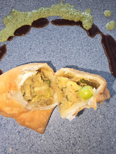 We chose two unfamiliar ones coupled with one familiar-ish, with a Samoosa starter. We decided the main for us would be from the Tandoori, a spicy whole grilled fish (Pampono-a salt water fish found in the Gulf, Atlantic & Caribbean ocean)... highly recommended, •Bagara Baigan - a traditional Indian dish that comes from Hyderabadi cuisine in the southern state of Telangana/Andhra Pradesh. If eggplant is in your wheelhouse but in a luscious luxurious highly flavored coconut, peanut, sesame seed, and spices sauce sounds good to you, get it! •Palak Paneer - a classic in just about every Indian restaurant. However, theirs was unique to the region. Unlike the northern creamy version, their palak (spinach sauce) had a unique nuttyness and coconut flavor. And a true first for me, the paneer (cheese) was browned first. •Garlic Naan... of course.