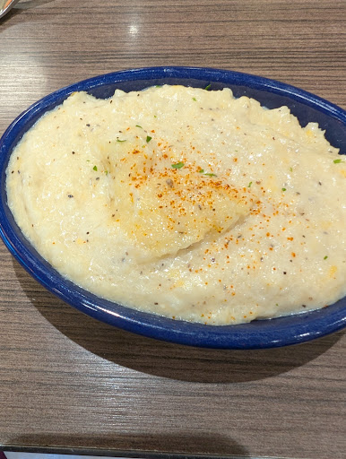 I asked for grits and she said they have cheese in them that could not be removed. The red flag went off in my gut, but I figured they probably just made a big batch with the cheese melted in. No biggie, grits take a long time to cook depending on the grind.