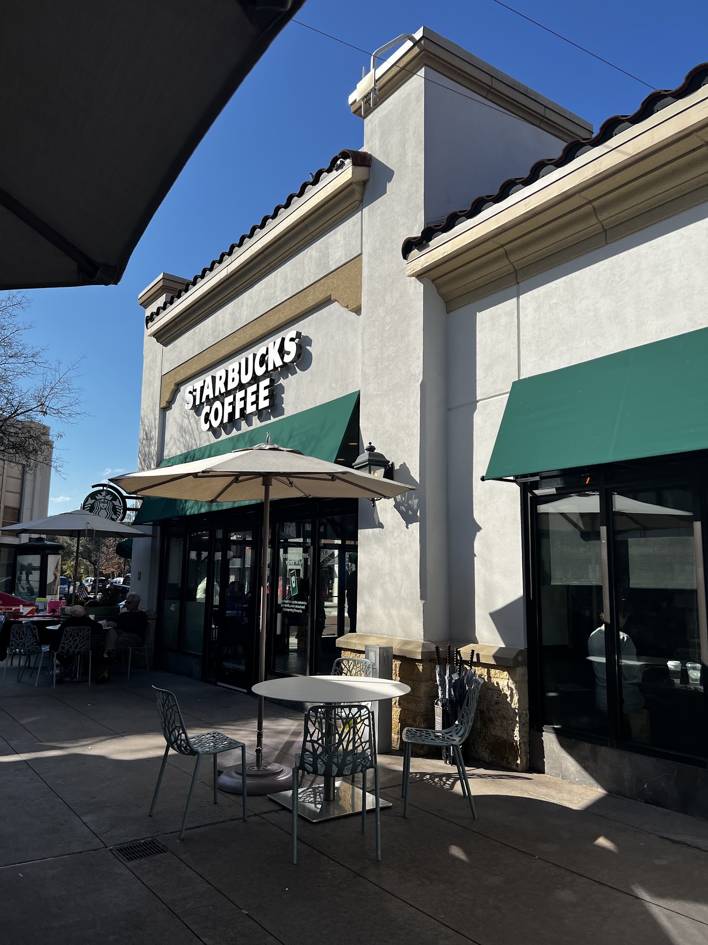 Read moreIf you are looking for a place to get any work done, read or study…This is not the place for you. There’s only one long table in the whole place. It’s very small. This Starbucks is intended for pedestrian foot traffic walking Market Street as the parking also sucks. If you are in Market Street it’s located near the Hyatt at the end behind Sixty Vines. They do have a bunch of outdoor seating so on a nice day it’s a great place to hang out. I am a daily Starbucks visitor and I don’t find the employees here to be super friendly. They do have tons of employees that work on Sunday mornings, especially during coffee and cars but the wait times are still really long and they all seem very annoyed with any requests. I don’t see this attitude with any of the other Starbucks in The Woodlands. Not sure why. Self-righteous barista attitudes get really...
