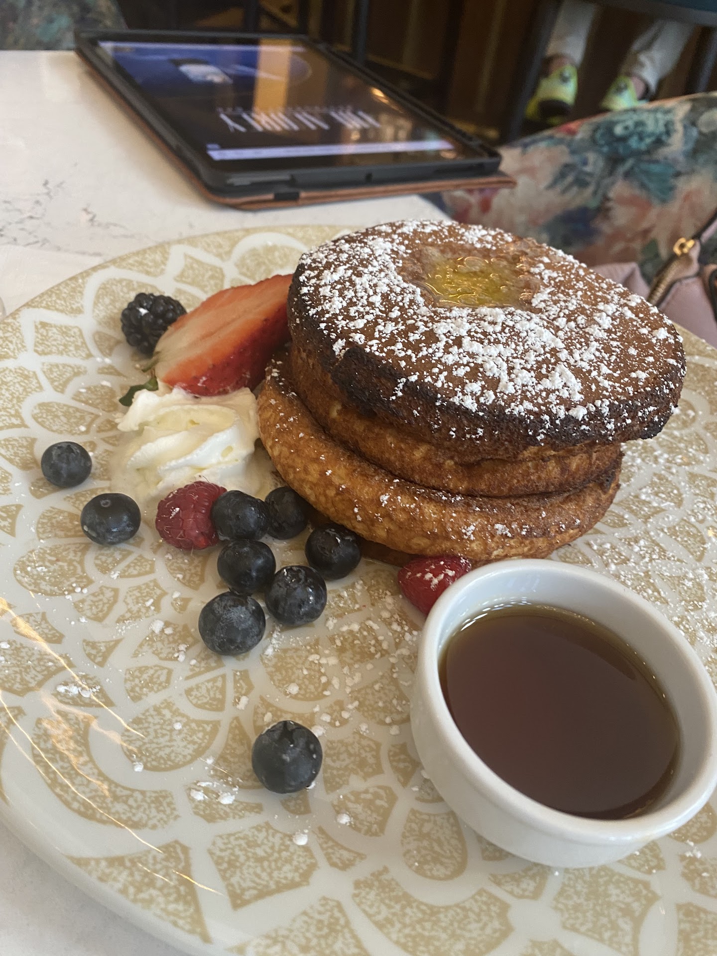 Now that is just the service. Letâs talk about this delicious food! I ordered the French toast. Do not even leave without trying it. It was literally the best French toast Iâve ever had and I consider myself something of a mini chef. We also ordered the coastal eggs Benedict at the hostessâs suggestion and my friend LOVED it. We had it be with lobster and the other with a crab cake. We also ordered some soufflĂŠ pancakes . Mmmmmmm. This so was beautiful to eat and look at. Had a few sides as well. Turkey bacon and chicken sausage (I do not eat pork and try to avoid beef but I saw the real bacon at the table next to me and it looked good!) My friend had a drink that she loved; she said it tasted like rose water lemonade and she enjoyed it. It was pretty! I wanted to order the Parker house rolls but I could not possibly stuff more food in my mouth. Iâll be back next week. In the meantime check out the pics! These are all the pics I got. We were busy eating đ