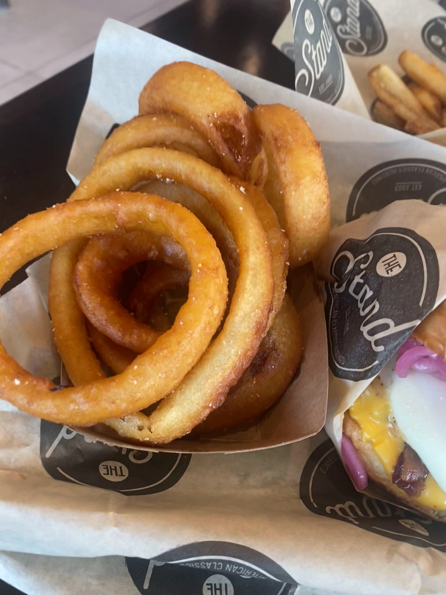 Sit down and burger fries and onions rings come out. It looks amazing. I scrap off the pickled onions and notice the egg. Itās not fried at least not fried HARD. Way to much jiggle to the egg (and I love a good runny egg) but thatās not what I was expecting. It was not fried enough for me if at all. That was scraped off as well. Finally but into the burger and itās decent decent flavor and cooked how I wanted. I did not enjoy the bun and I love brioche bread but it was too much. To thick and to sweet. It just wasnāt a vibe for me but you may like it. I ended up just eating the burger without the bun (which is and option on the menu so maybe next time) again this is my review based on my taste. The fries were good nothing special but a good fry. I didnāt particularly enjoy the onion rings. They didnāt come with ranch just ketchup and maybe I should have asked. I didnāt enjoy the better they were fried in. Too thick kinda pancakey.