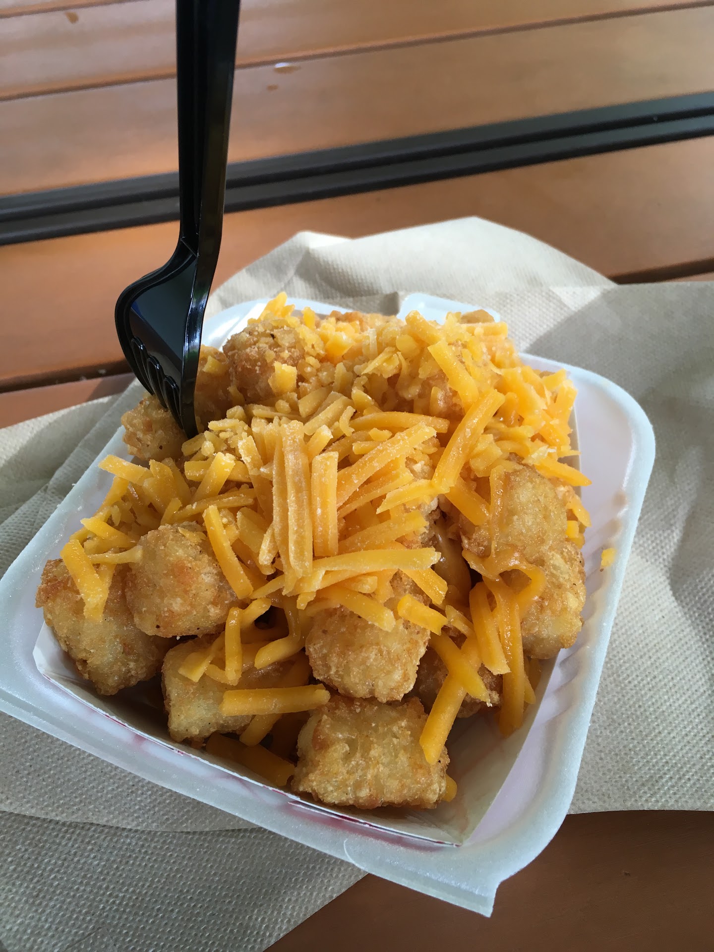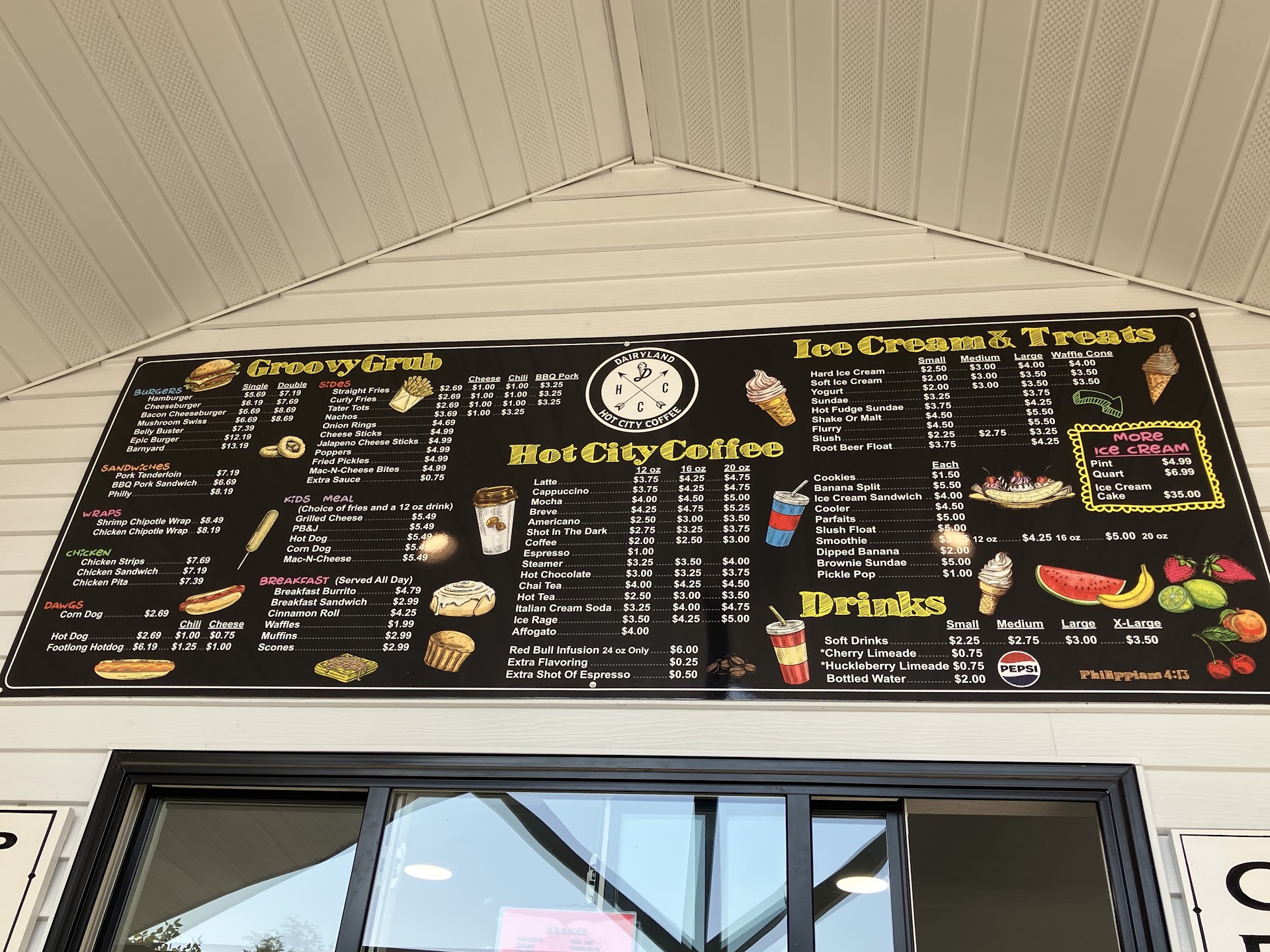 We arrived around 4 pm on a very hot Friday (8/11) and they were busy. Several cars in the drive-through line and several people standing in line in front of us. We weren’t in a hurry, though, so decided to have our late lunch here anyway. Faith, our cashier, was very friendly and helpful. By the time we got to the window, the line behind us was pretty long, so we decided to order ice cream with our food, rather than getting back in line after eating. We got our ice cream right away and enjoyed the deliciousness while waiting for our food. It’s fun to have dessert first once in a while, especially while on vacation. We got butter brickle and Stuck-in-a-Rut (mini Rolos) and both were excellent. My husband got the hotdog, which he enjoyed, and fries, which are excellent. I got the pulled pork BBQ nachos. Messy, but great flavor. One note: While waiting in line for food, we had no idea what our options were. It wasn’t until we were close to the order counter that we could see and read the menu boards. Maybe consider putting reader boards out with a sampling of food choices and/or ice cream flavors. Locals probably arrive knowing what they want already, but it might be helpful for...