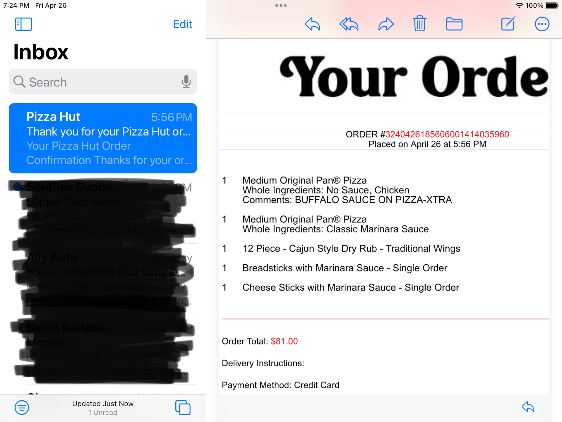 Avoid at all costs and go to the fired pie place down the road. I'm sure when you spend over $100 there, they'll at least give...